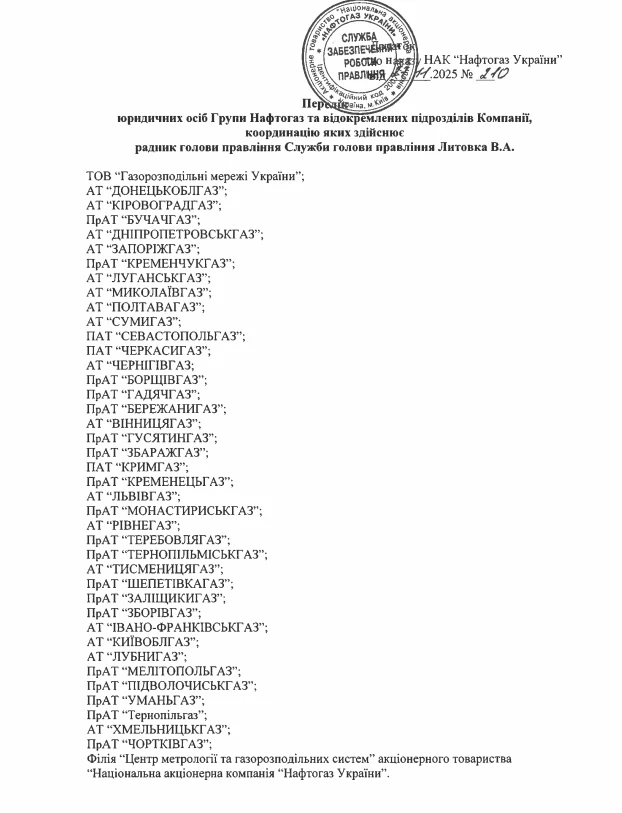 Всього йдеться про понад 40 юридичних осіб Групи “Нафтогаз” та відокремлених підрозділів компанії (йдеться про газорозподільні компанії, які займаються доставкою природного газу споживачам та обслуговують газові мережі – ЕП.).